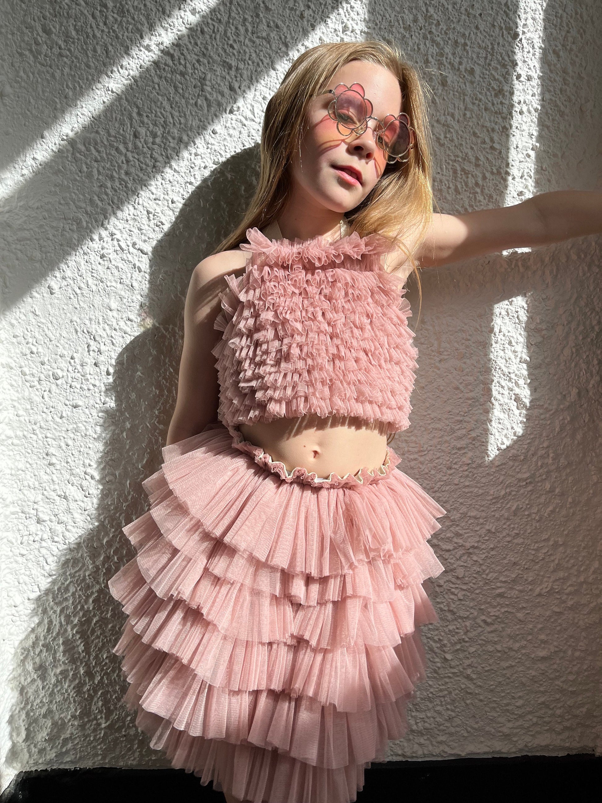 Dusky pink ruffle tutu/top set