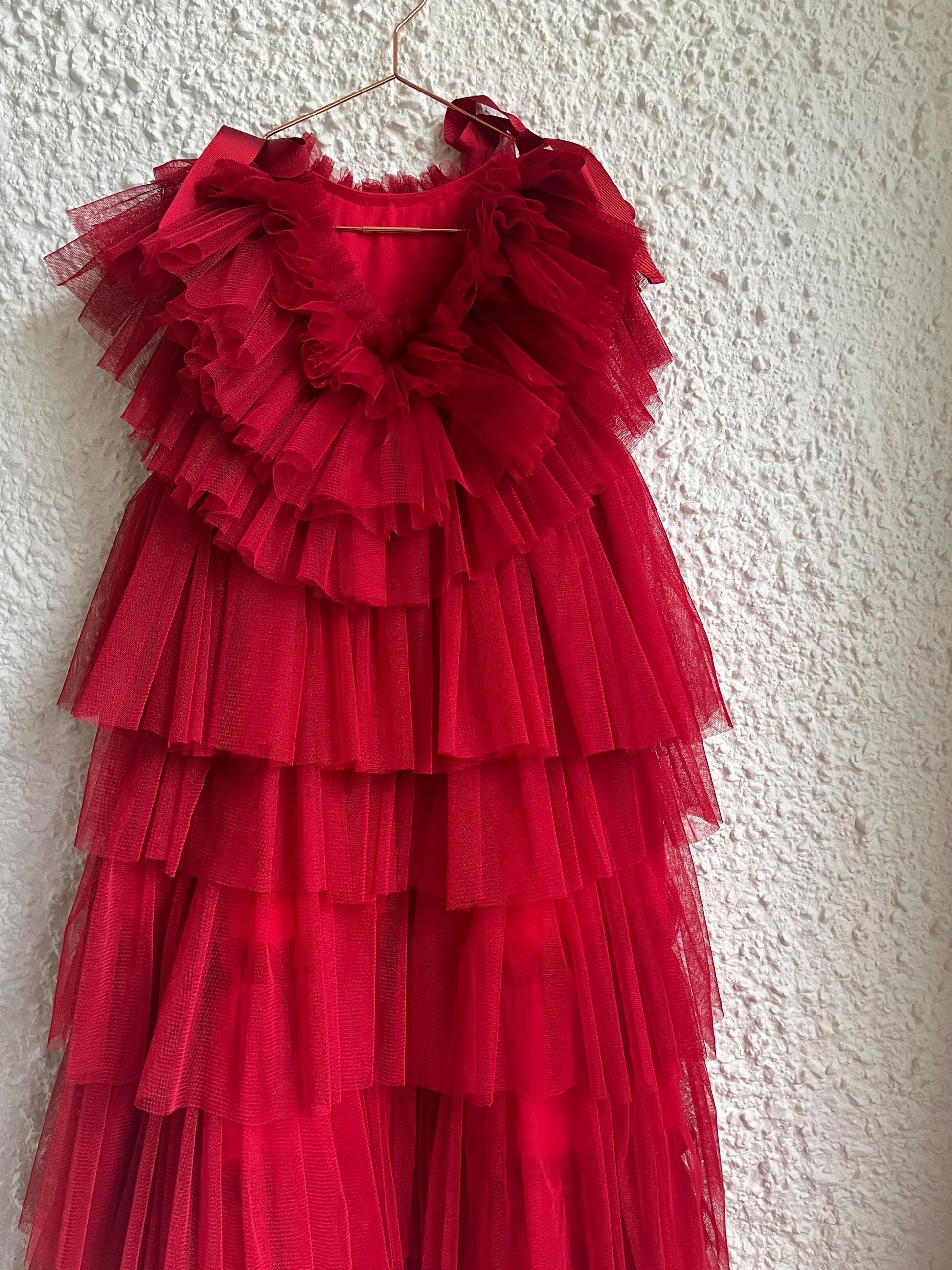 Red tulle ruffle dress