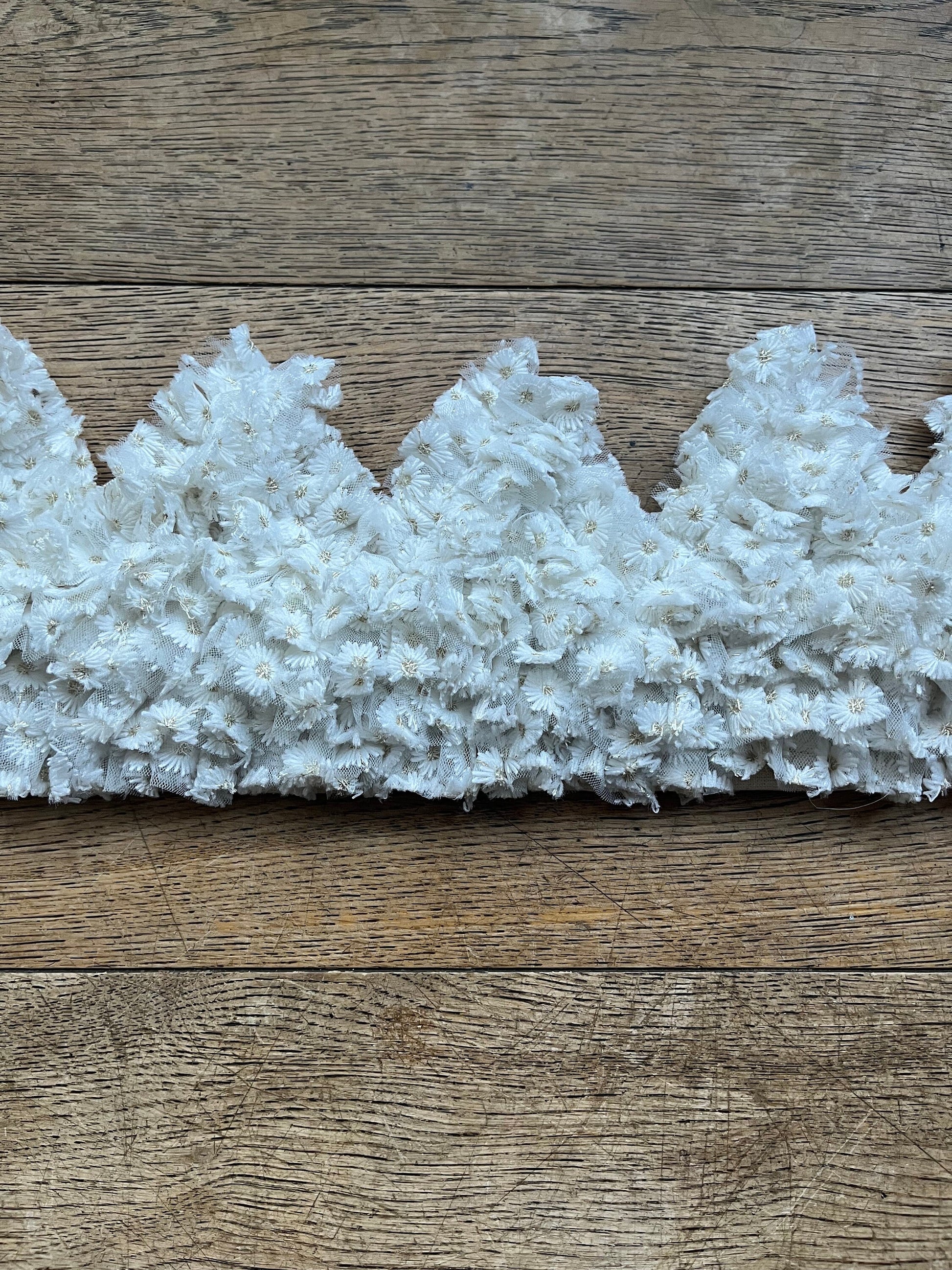 Stunning white embroidered daisy ruffle crown